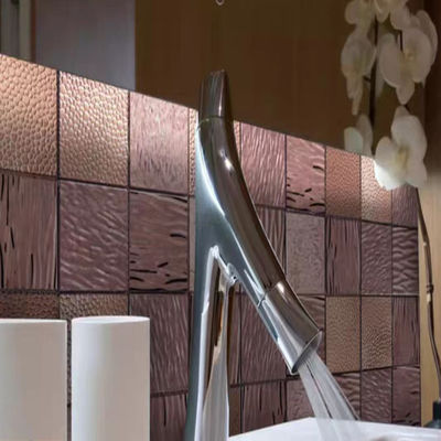 De aço inoxidável é um material forte e altamente durável que seja perfeito ser usado em construções e em características de projeto interiores e exteriores. Usar mosaicos de aço inoxidável coloridos significa que os profissionais do projeto podem integrar o elemento da cor em seus projetos, em vez de optar para o olhar de aço inoxidável regular.