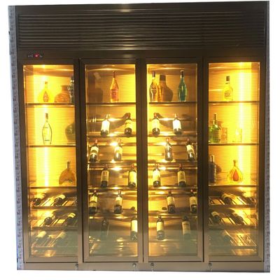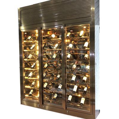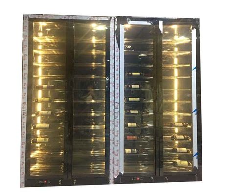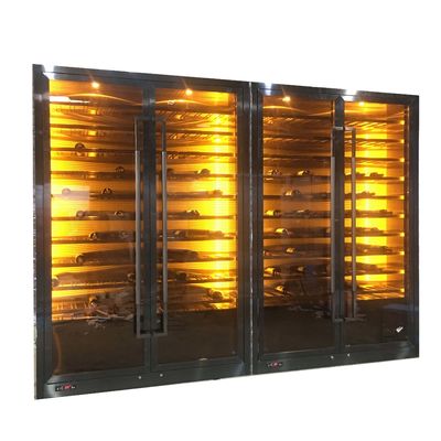 Portão de vidro de design luxuoso Negro Ouro Temperatura constante Aço inoxidável Armazém de vinhos de sala de estar