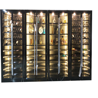 Armário de vinhos de aço inoxidável de metal preto sob medida Temperatura constante de 12 a 18 graus Celsius