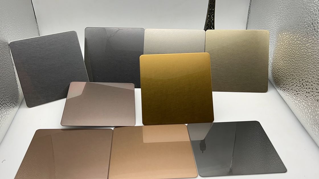A folha de aço inoxidável de cor PVD está disponível em uma ampla gama de cores.Para obter uma ampla gama de cores, são utilizadas variações de processo e de liga.